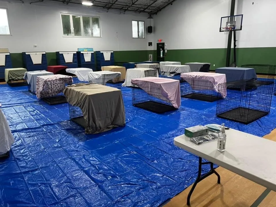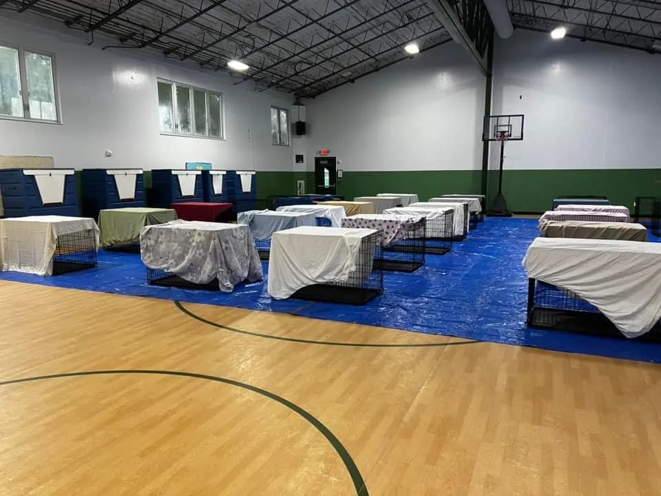 The Disaster Emergency Animal Shelter has been held the past few disasters in the gym at Bunnell Elementary. The owners stay in general population while their pet is placed in an area with Flagler Humane Society employees and volunteers watching over them.
